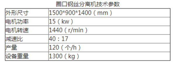 【圈口鋼絲分離機(jī)技術(shù)參數(shù)】
