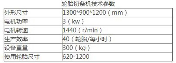 輪胎切條機是輪胎粉碎機生產線中的第二道設備,用于將切圈后的輪胎切割成寬度約30-40mm的長條,是拆解廢舊輪胎的必選設備。